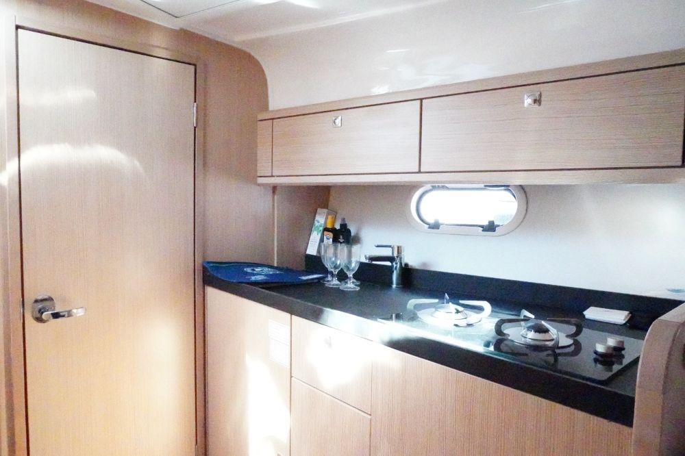 Construido cien veces, convencido muchas más. El BAVARIA S29 ya es un clásico en su clase de barcos de motor. Debajo de la cubierta del BAVARIA S29 es simplemente el mejor lugar para terminar un bonito día en el mar. Preparar una comida para cuatro personas es un placer en la cocina. Y si tus invitados quieren quedarse más tiempo, no hay problema: la mesa del salón se puede bajar y el área transformarse en una cómoda cama doble. La atención al detalle que es tan típica de BAVARIA también se evidencia aquí.
