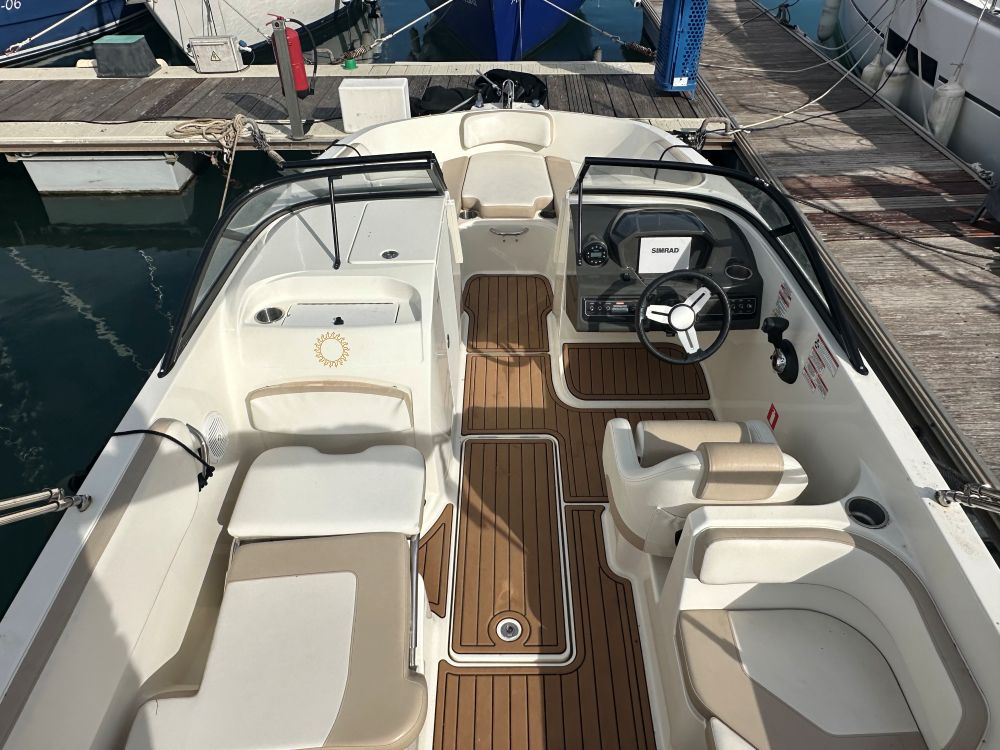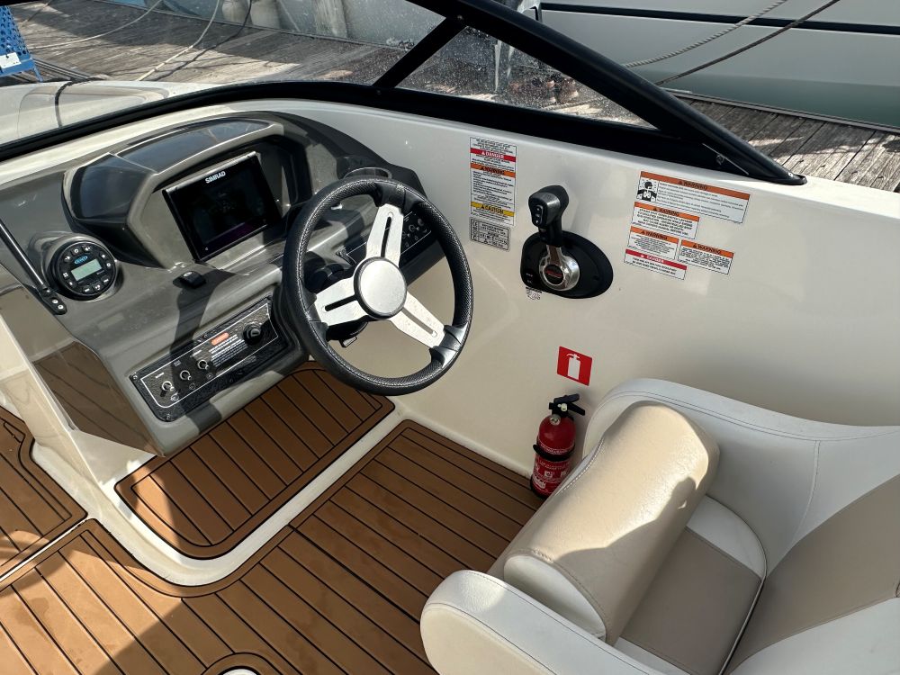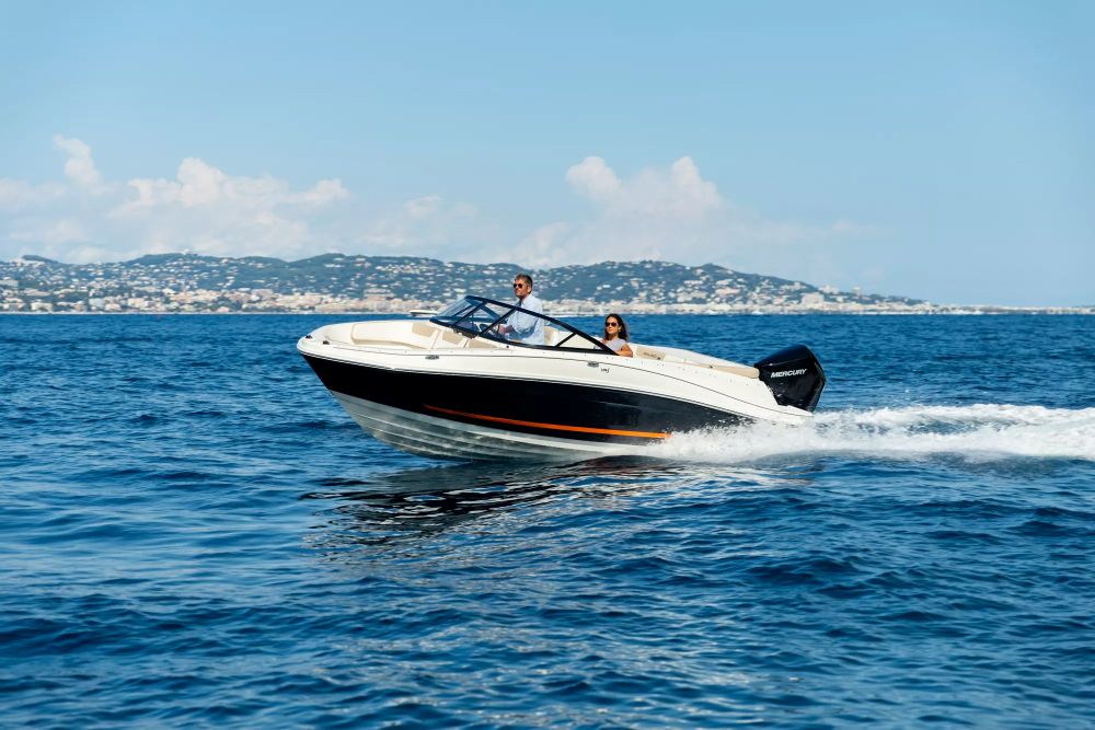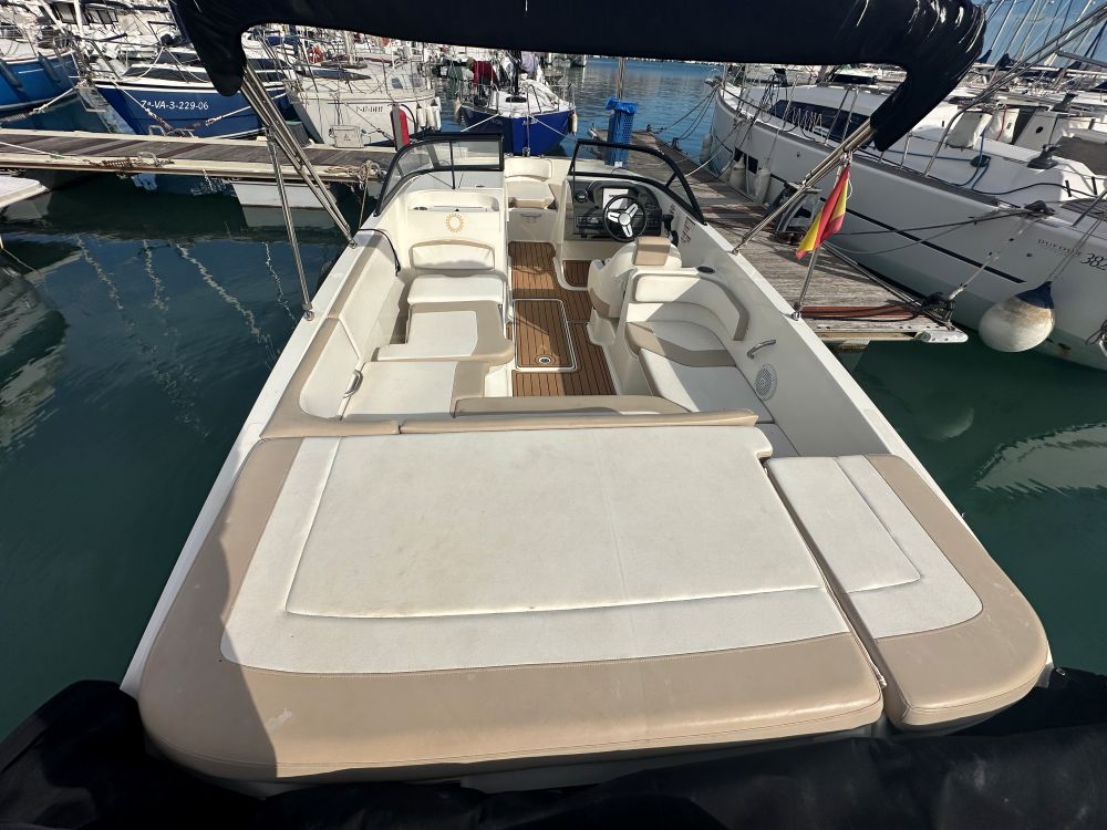 Diseño BeamForward™: Este concepto de diseño extiende la manga máxima del barco (2,45 m) hacia la proa, creando una zona de asientos en proa inusualmente espaciosa y con gran capacidad de almacenamiento debajo de los asientos.