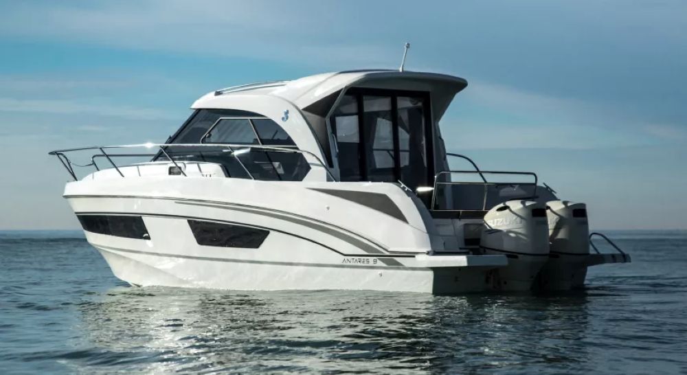Con su carena Airstep®, el Antares 9 pasa las olas con suavidad y ofrece el máximo confort y seguridad en navegación. Provisto de banquetas en U convertibles en solárium, su bañera muy espaciosa (1,53m x 2,40m) promete buen ambiente y descanso. Con una potencia que puede llegar hasta 2 x 200 cv, el Antares 9 se beneficia de los últimos avances tecnológicos en términos de motorización fuera borda.