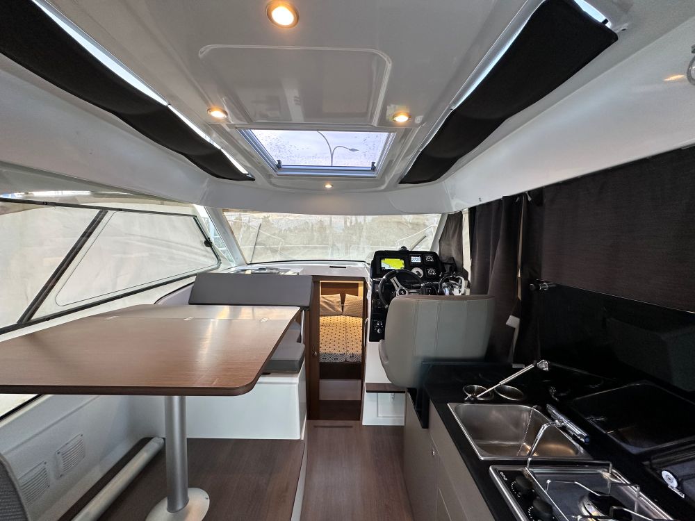 Con un sentido innato del detalle y del confort, el Antares 9 invita a prolongar las salidas en el mar. Moderno y con clase, perpetúa la tradición de elegancia de una gama histórica. Autonomía, habitabilidad, refinamiento : todo está reunido para vivir en gran clase el pequeño crucero. Beneficiándose de una cristalera de tres batientes, de una puerta lateral y de un techo abrible opcional, la timonería ultra luminosa alberga un amplio salón en frente a frente que puede acoger 4 personas.