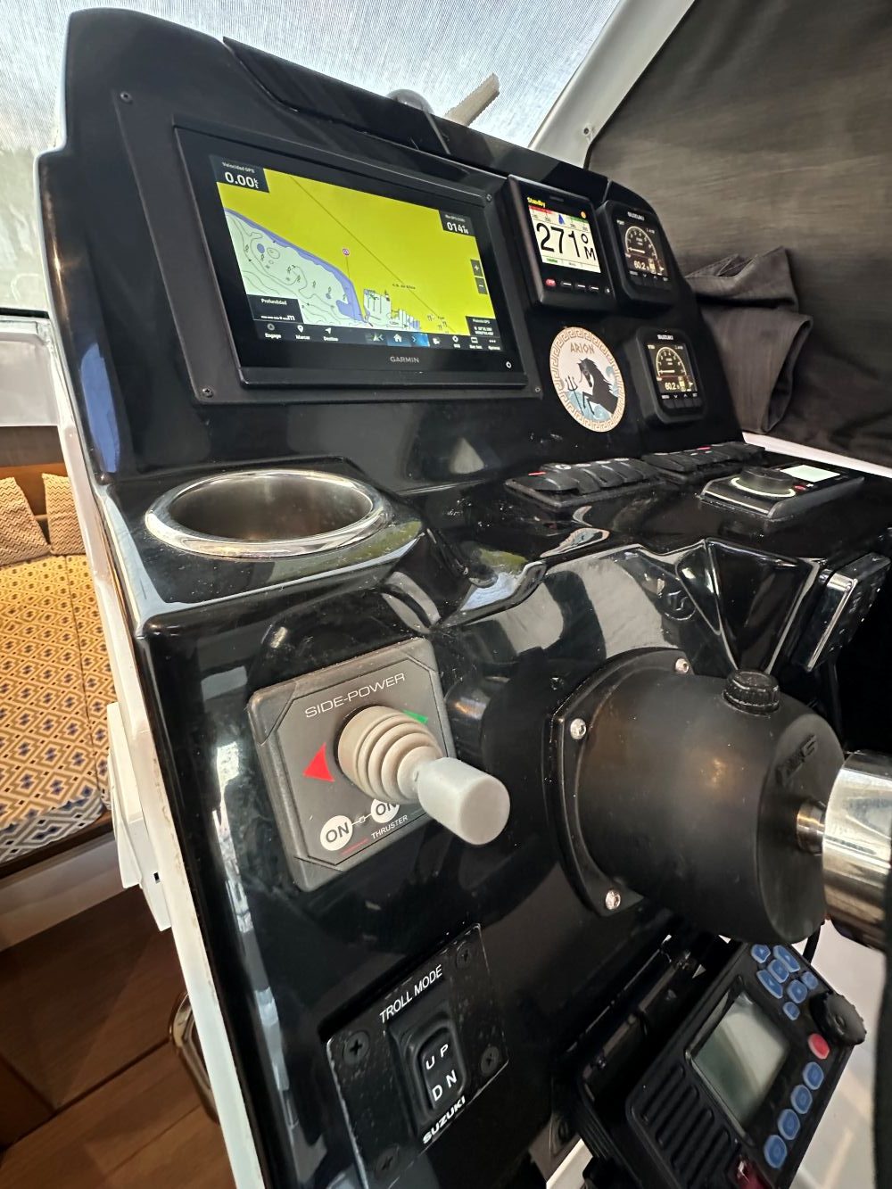 Este Beneteau Antares 9 OB esta full equipado: A/A, GPS, Radar, Piloto automático, hélice de proa, etc.