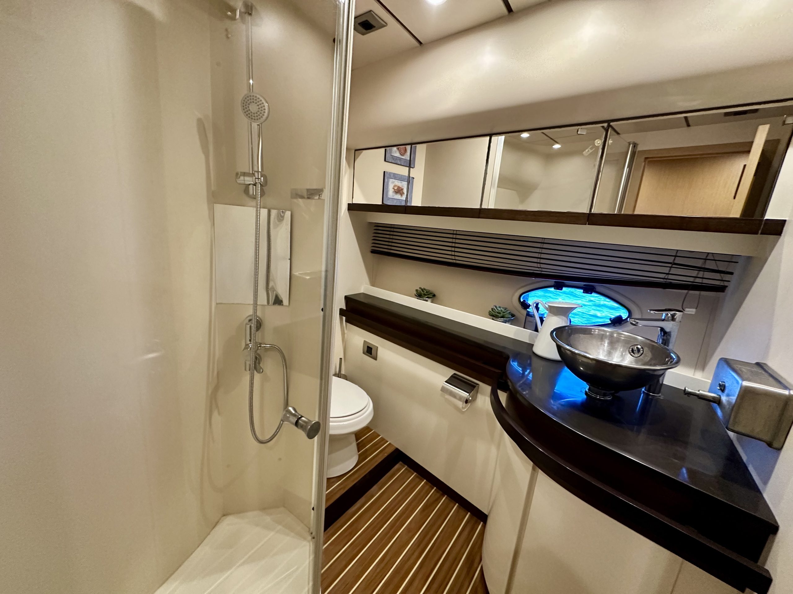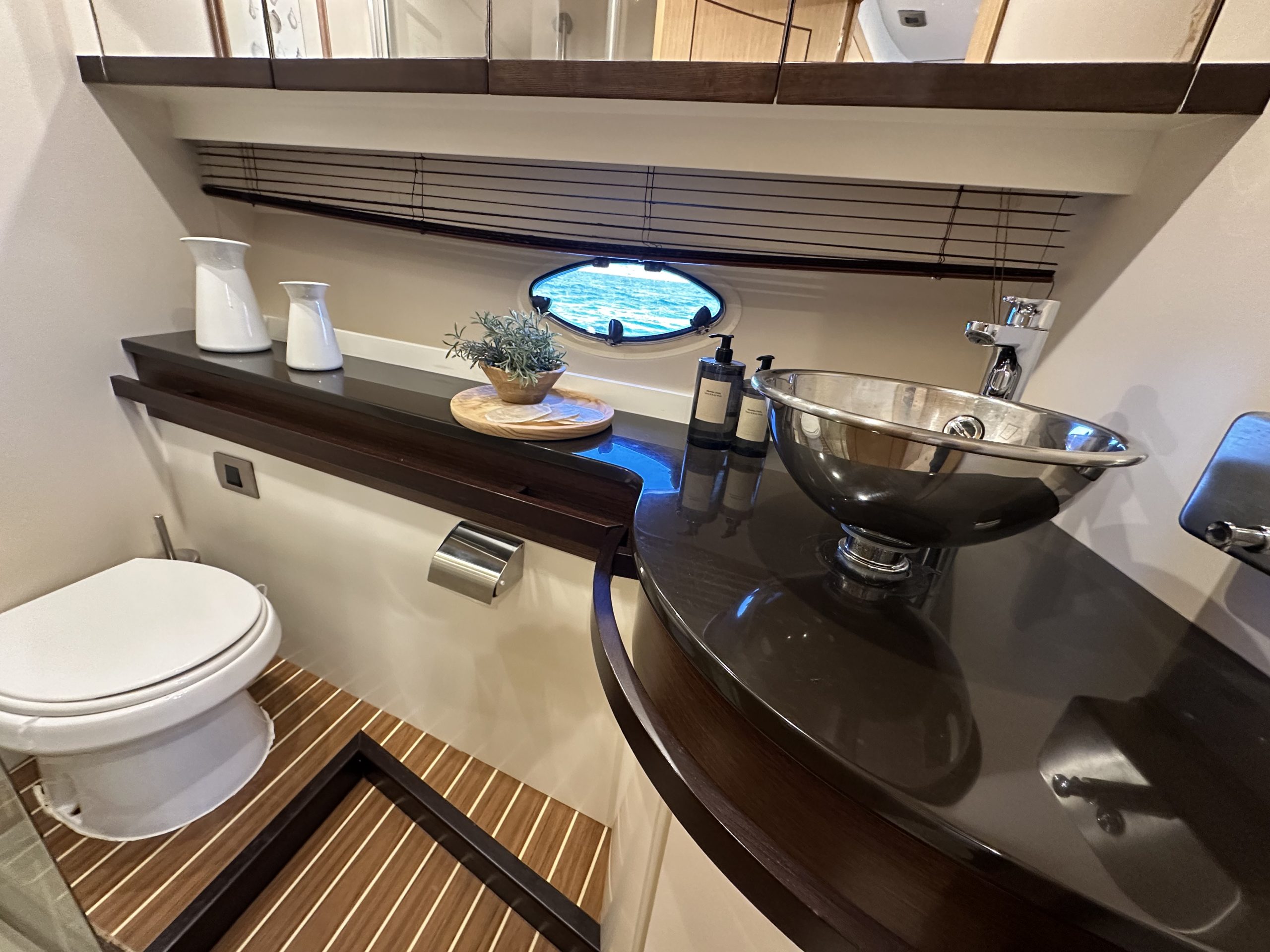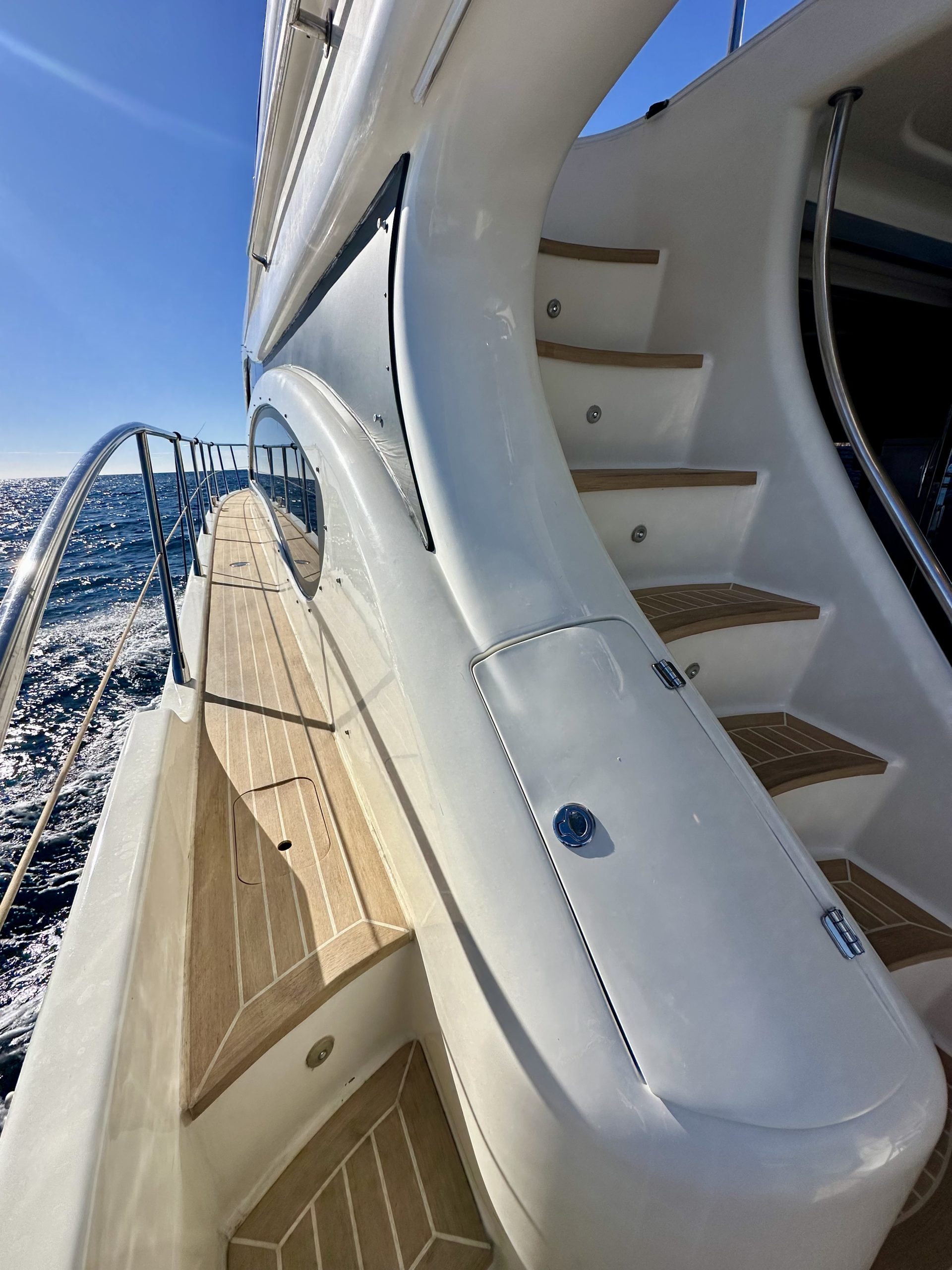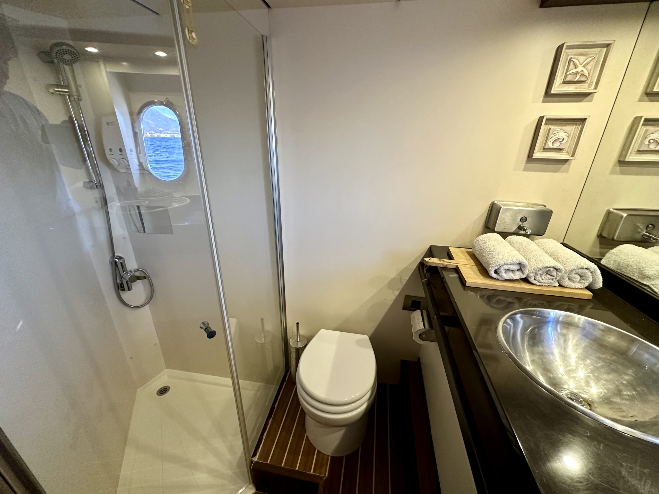Barco muy espacioso tanto interna como externamente con 3 dormitorios, tres baños y una cabina de tripulación con baño.