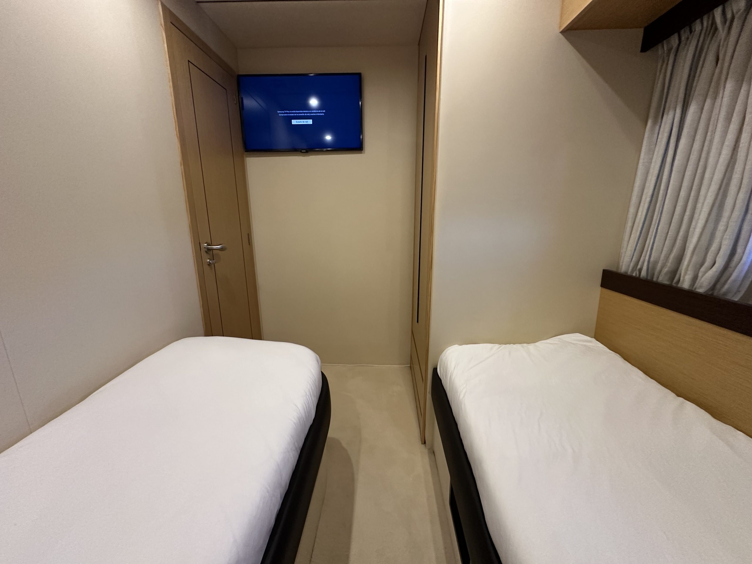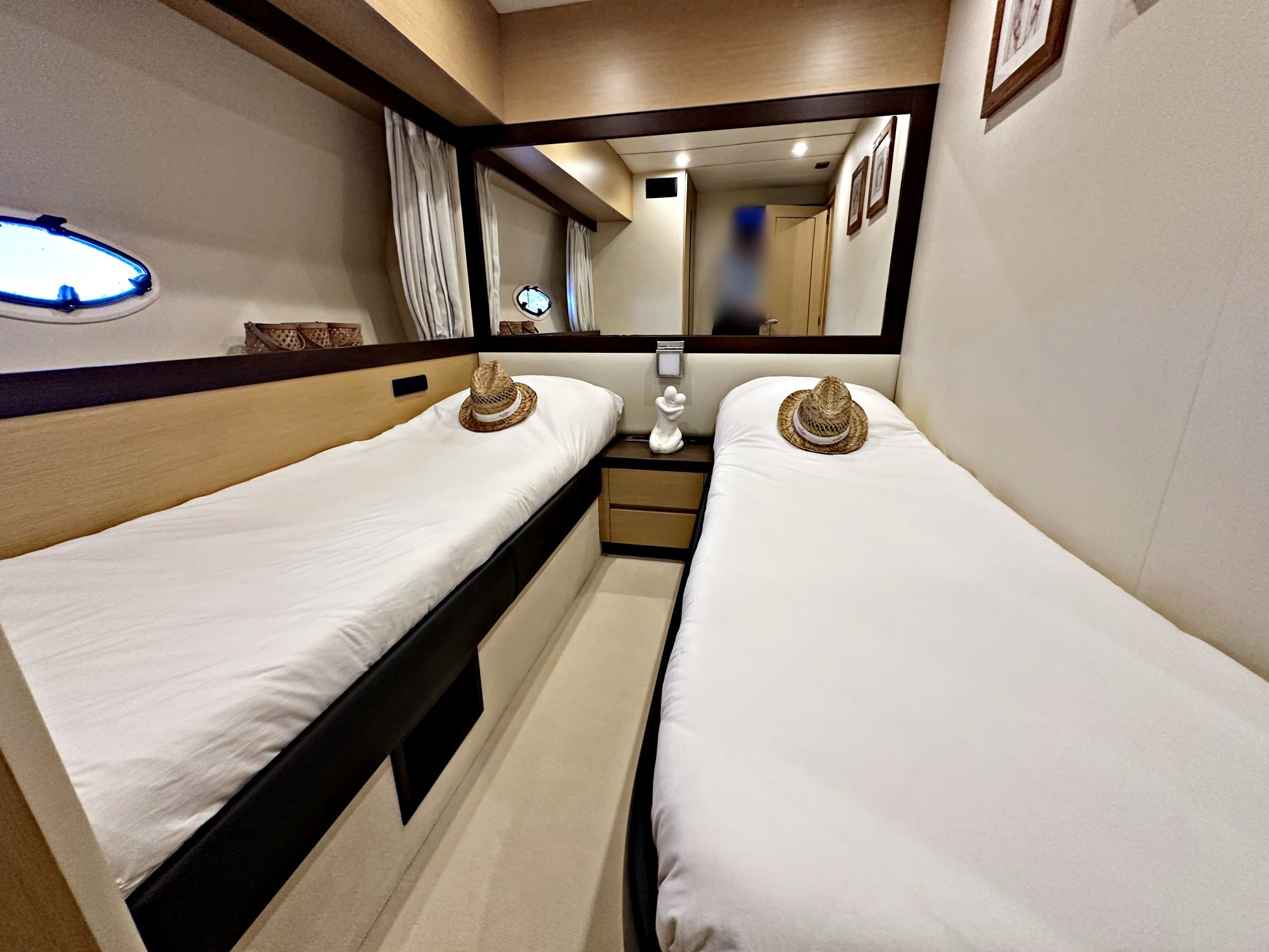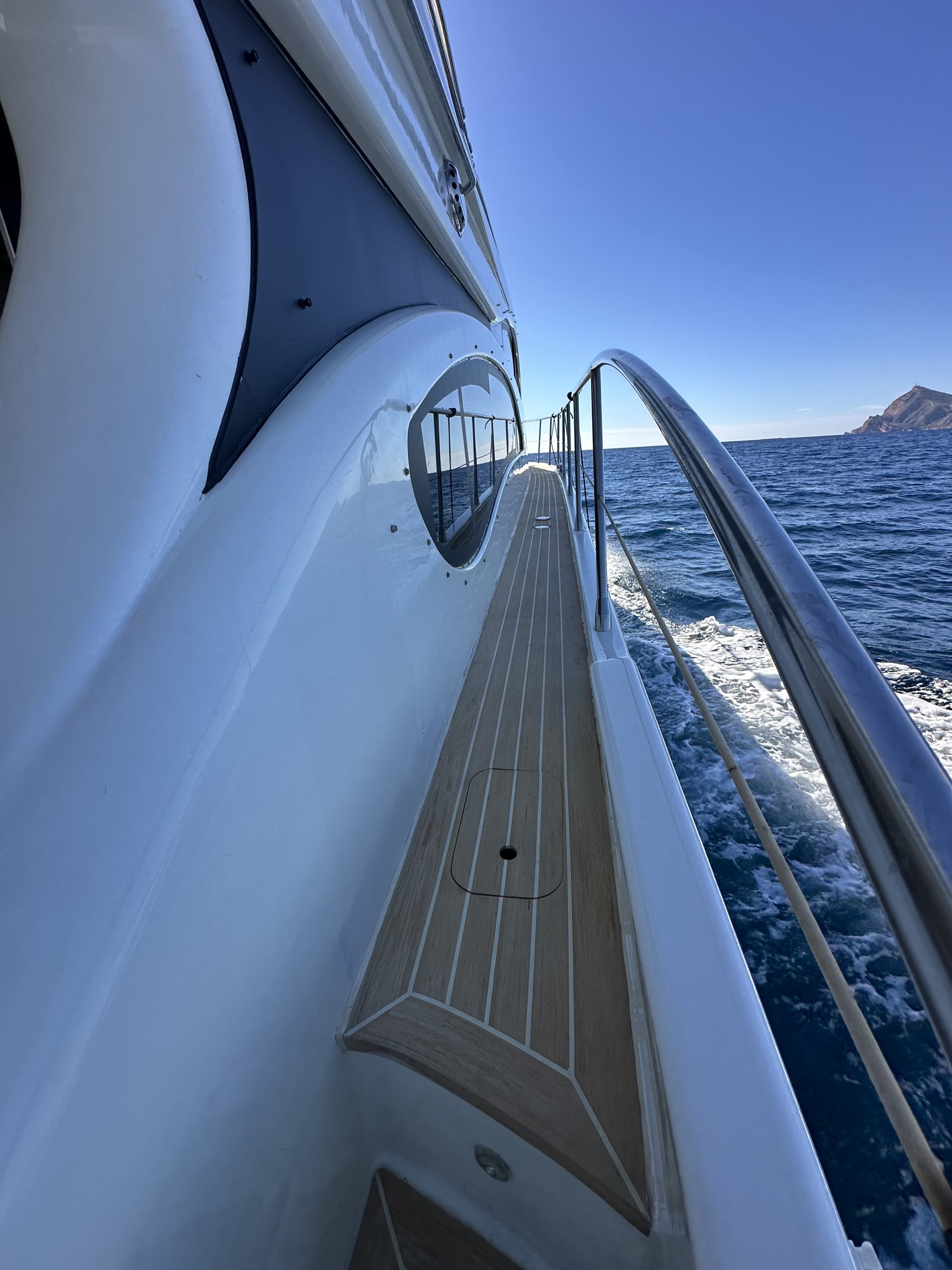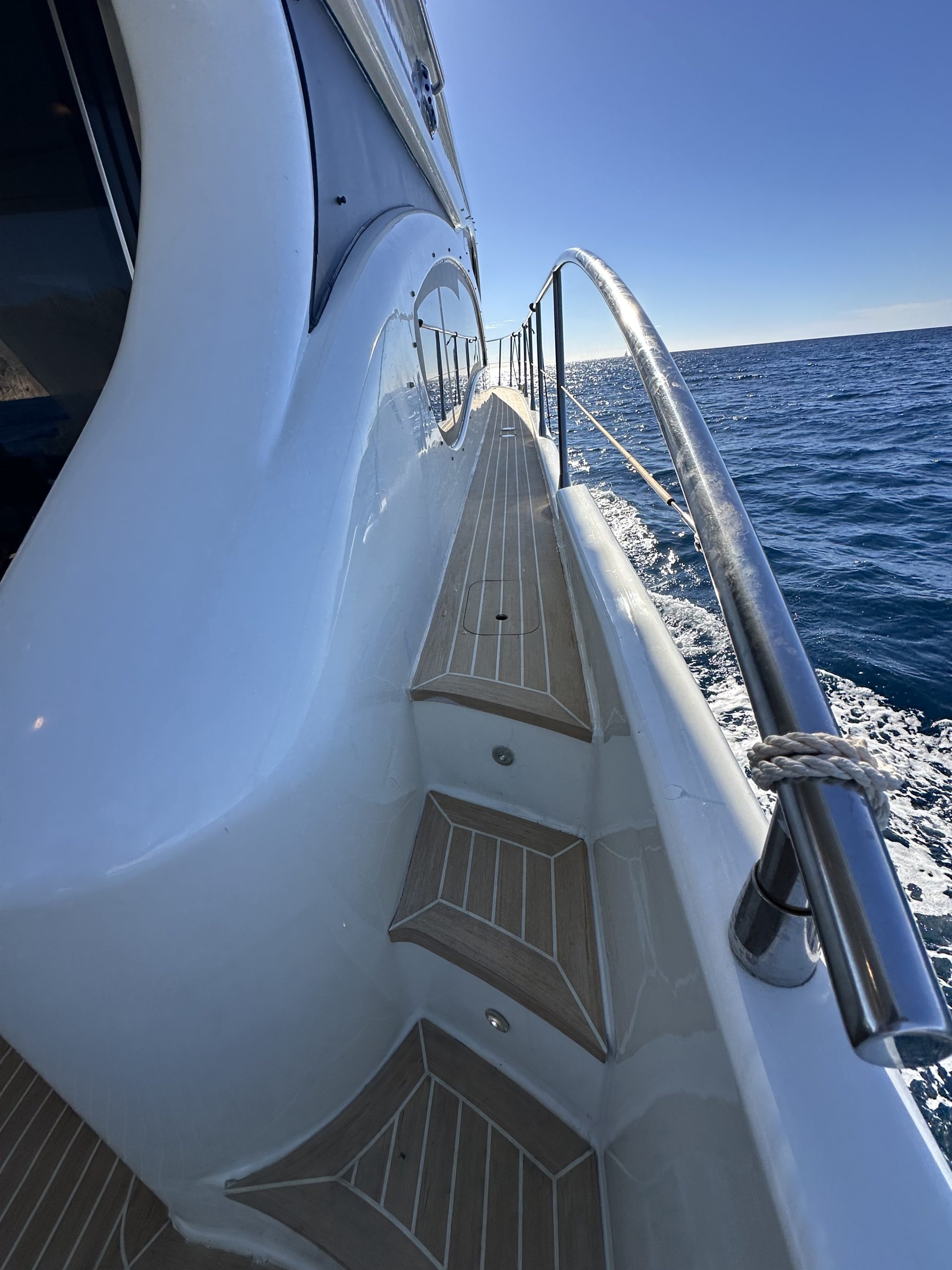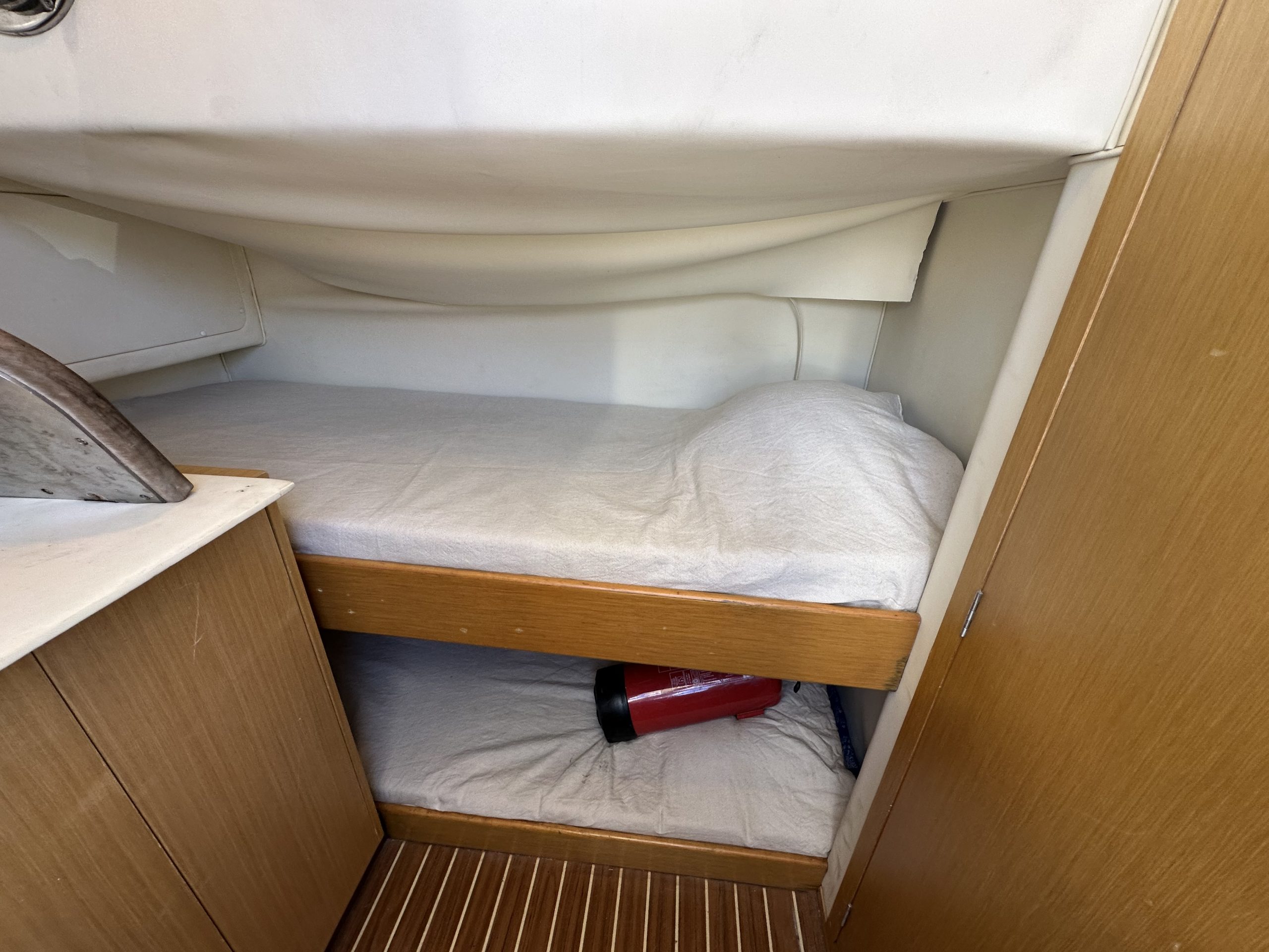 Barco muy espacioso tanto interna como externamente con 3 dormitorios, tres baños y una cabina de tripulación con baño.