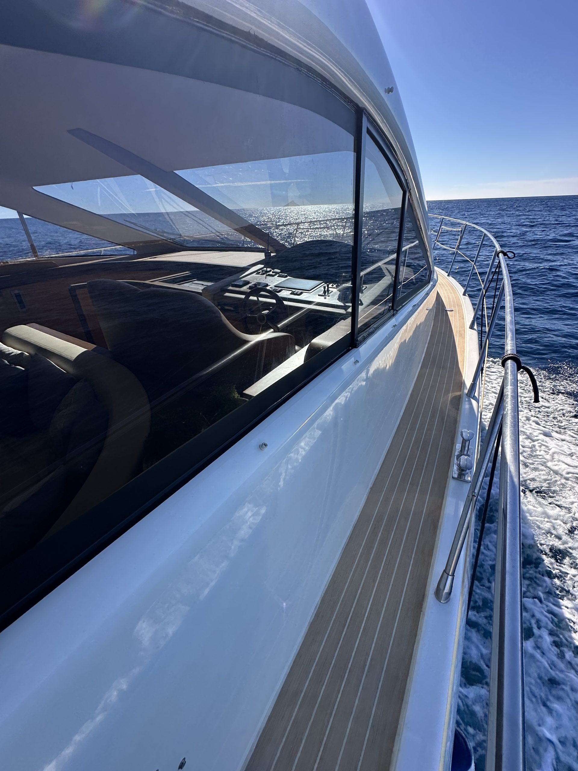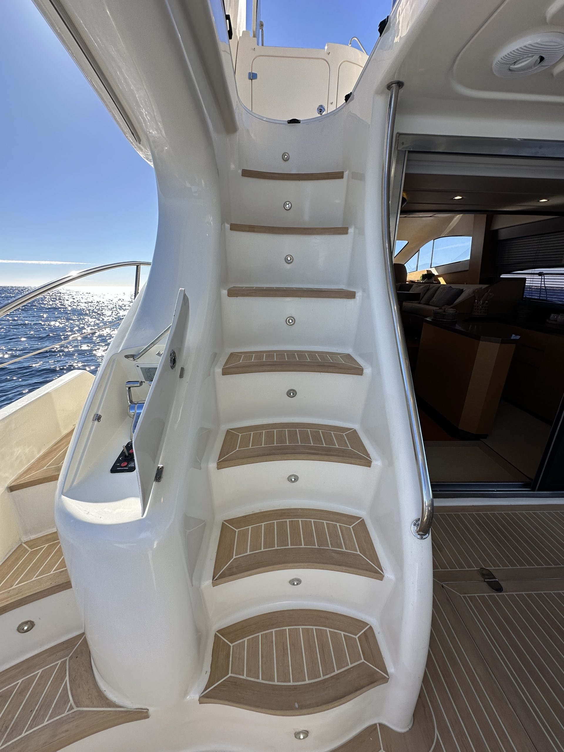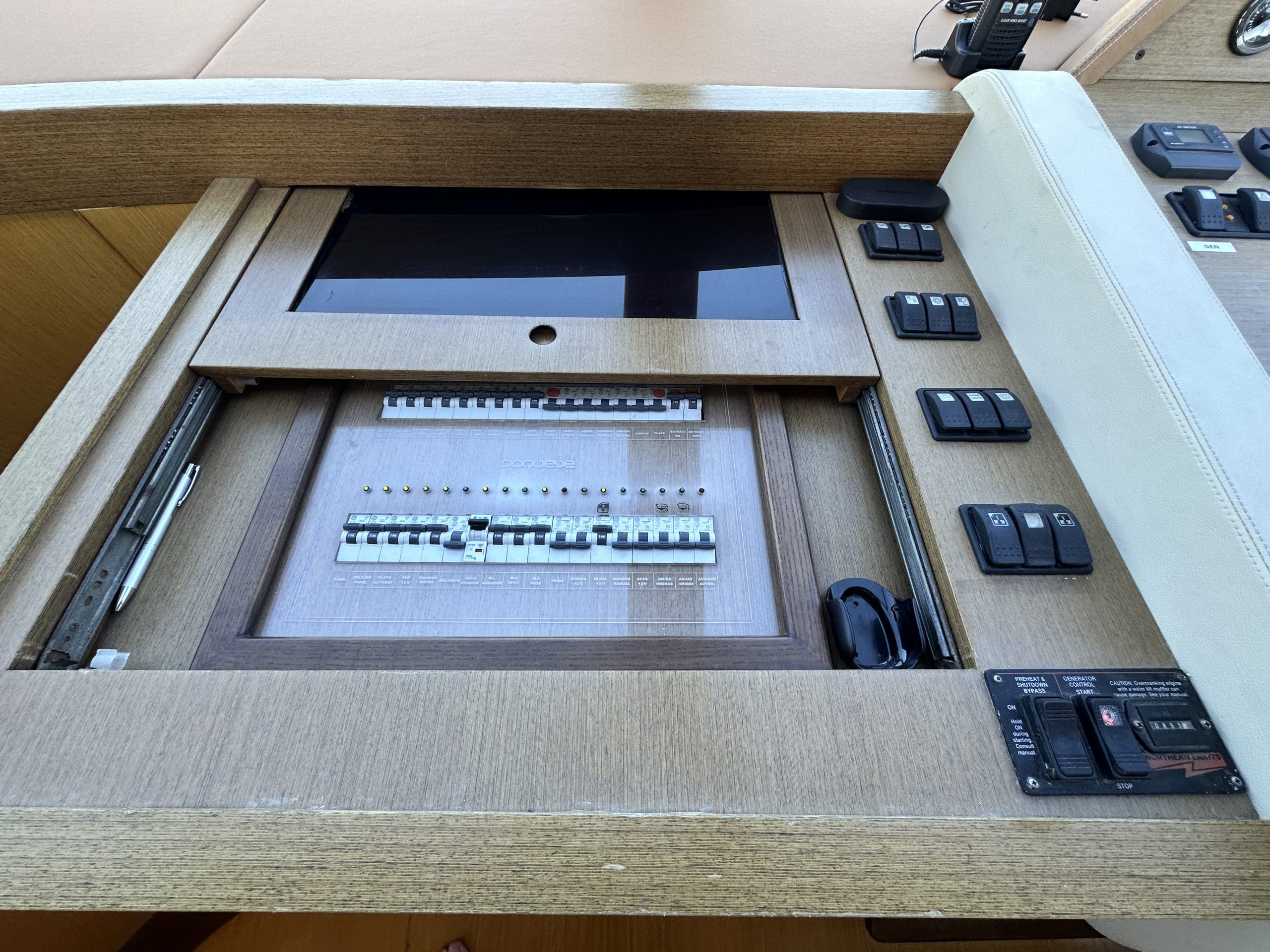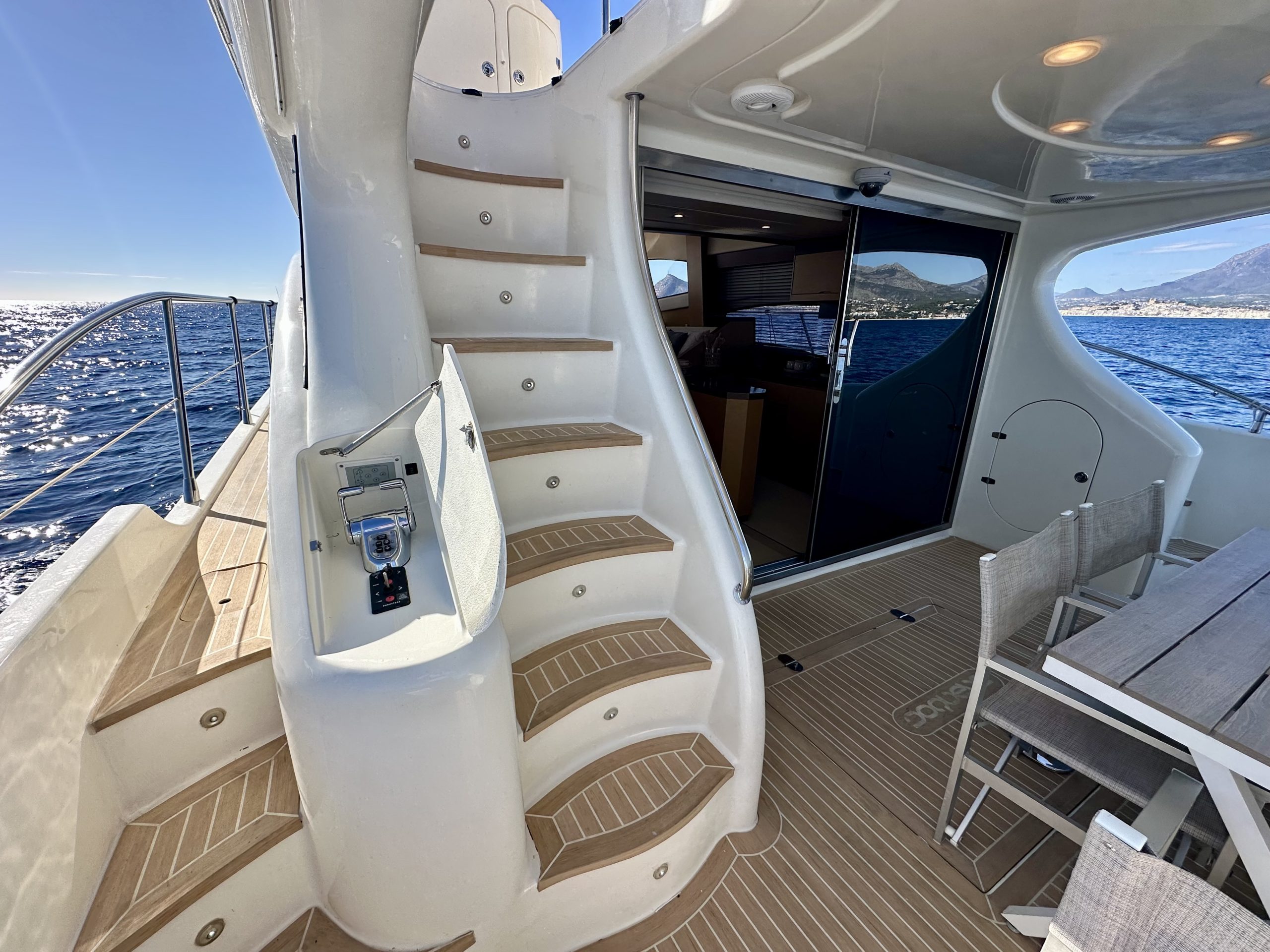 Barco muy espacioso tanto interna como externamente con 3 dormitorios, tres baños y una cabina de tripulación con baño.