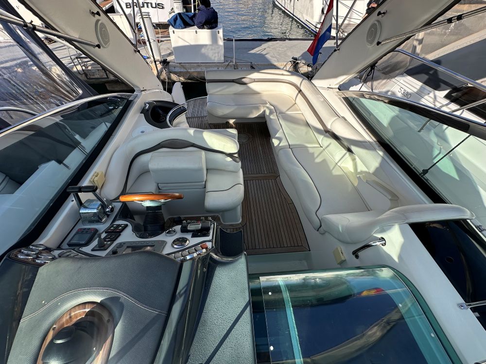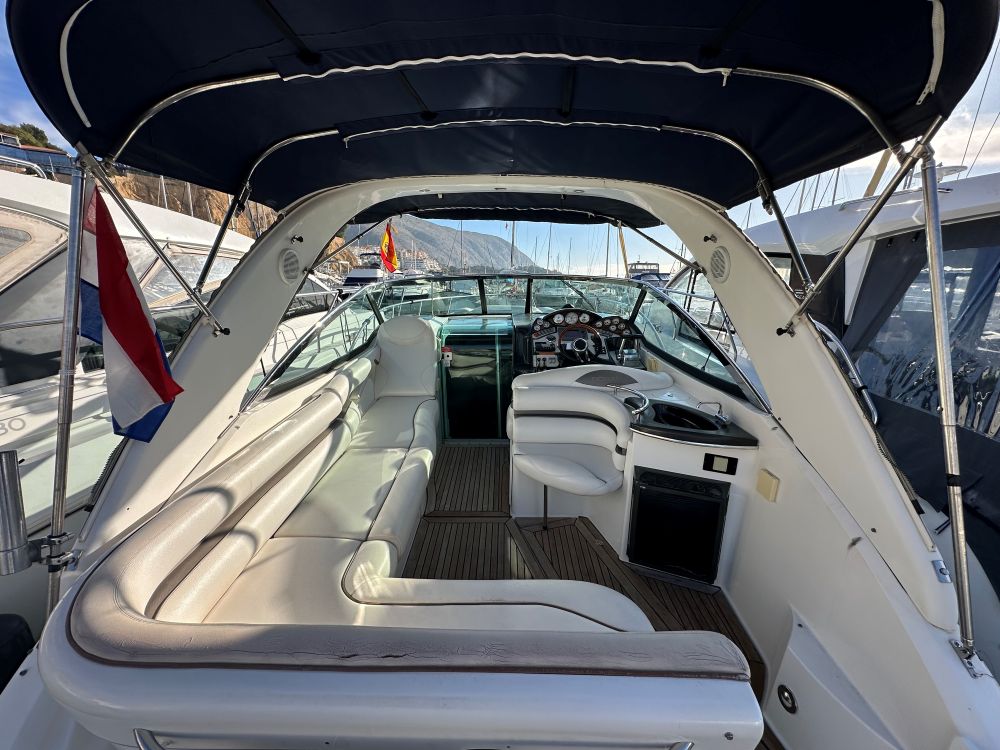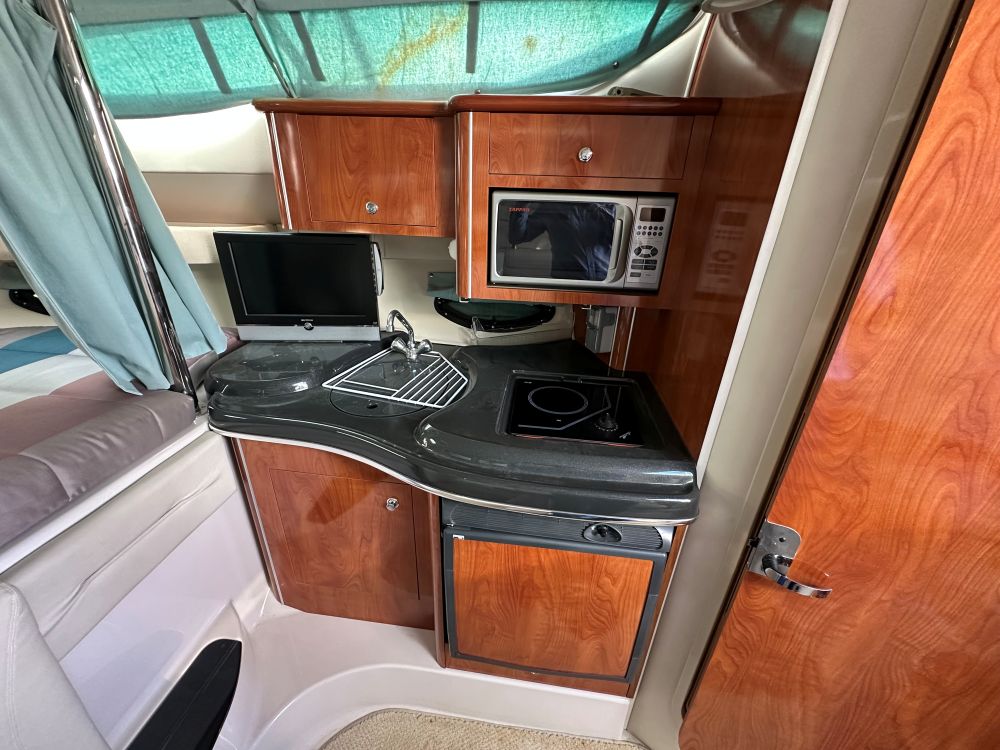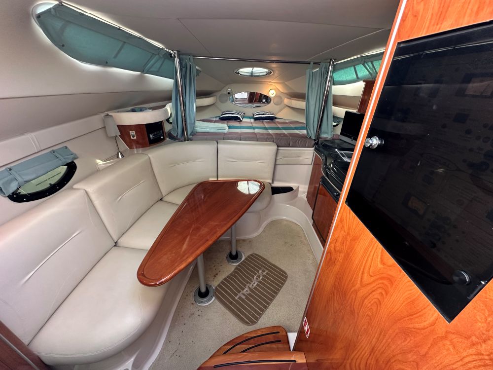 Con un diseño de cabina abierta sin mamparos fijos para maximizar la sensación de amplitud. Cuenta con una cocina completa (microondas, cocina, fregadero), un baño privado con ducha y dos áreas de descanso proa y popa.